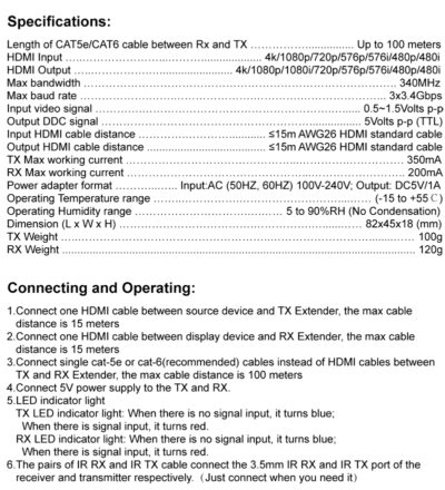 extienda grandes distancias su señal de video HDMI, con este kit de expansión. Hasta 100metros. compatible con señal 4k de hasta 30hz y 1080 60p.